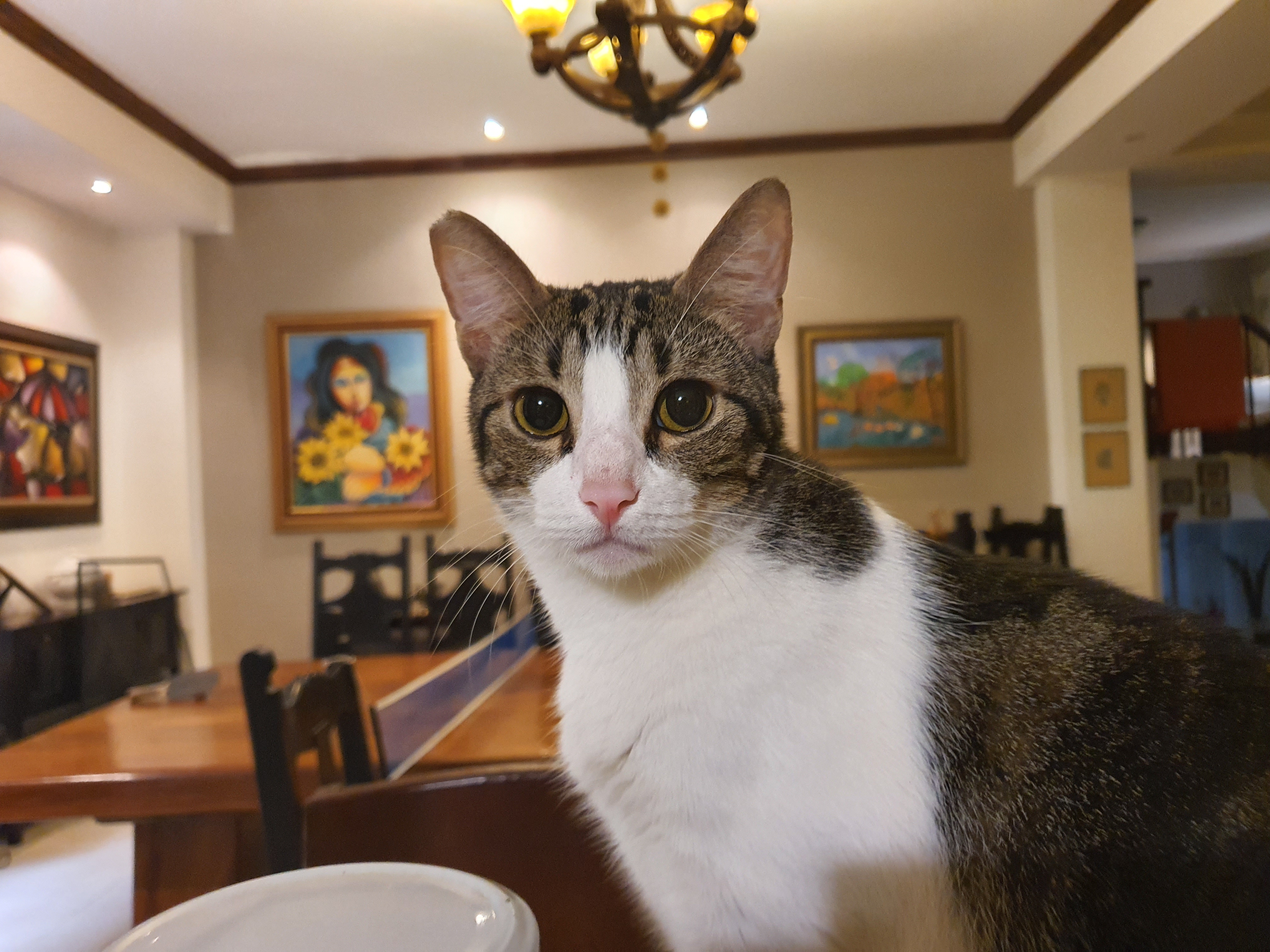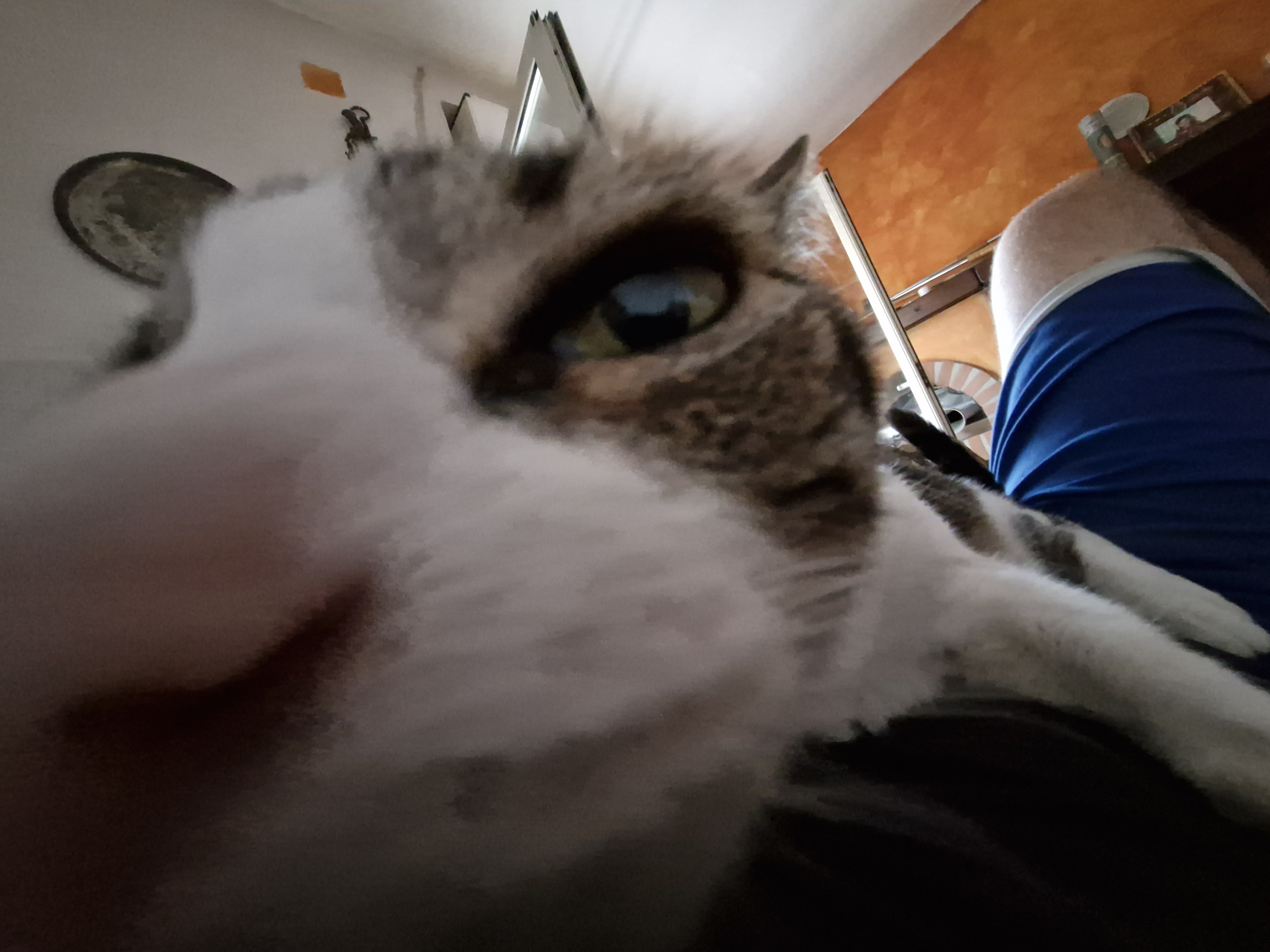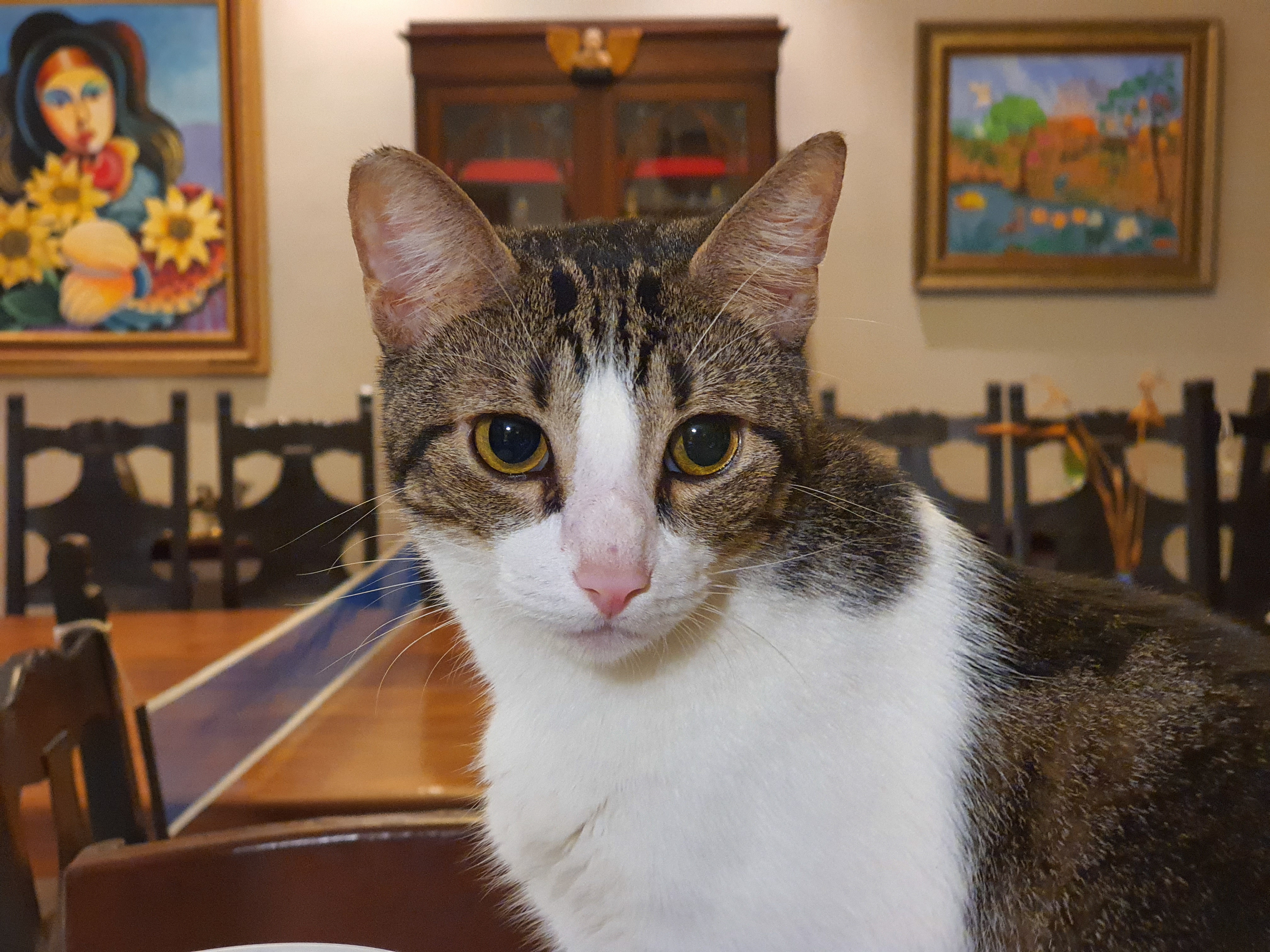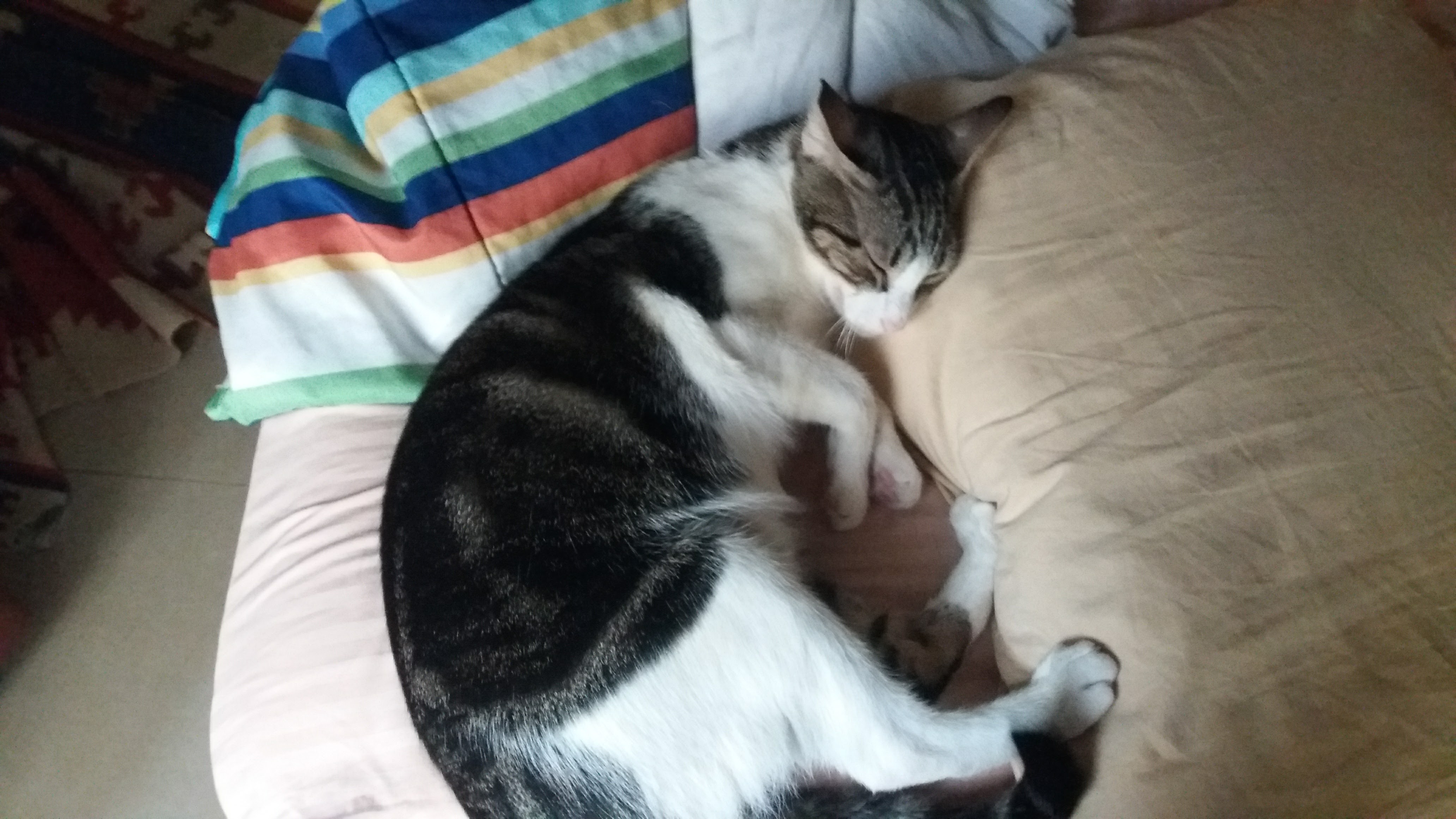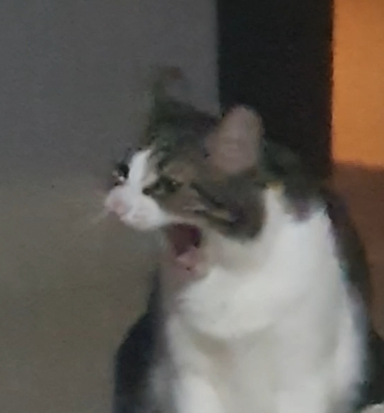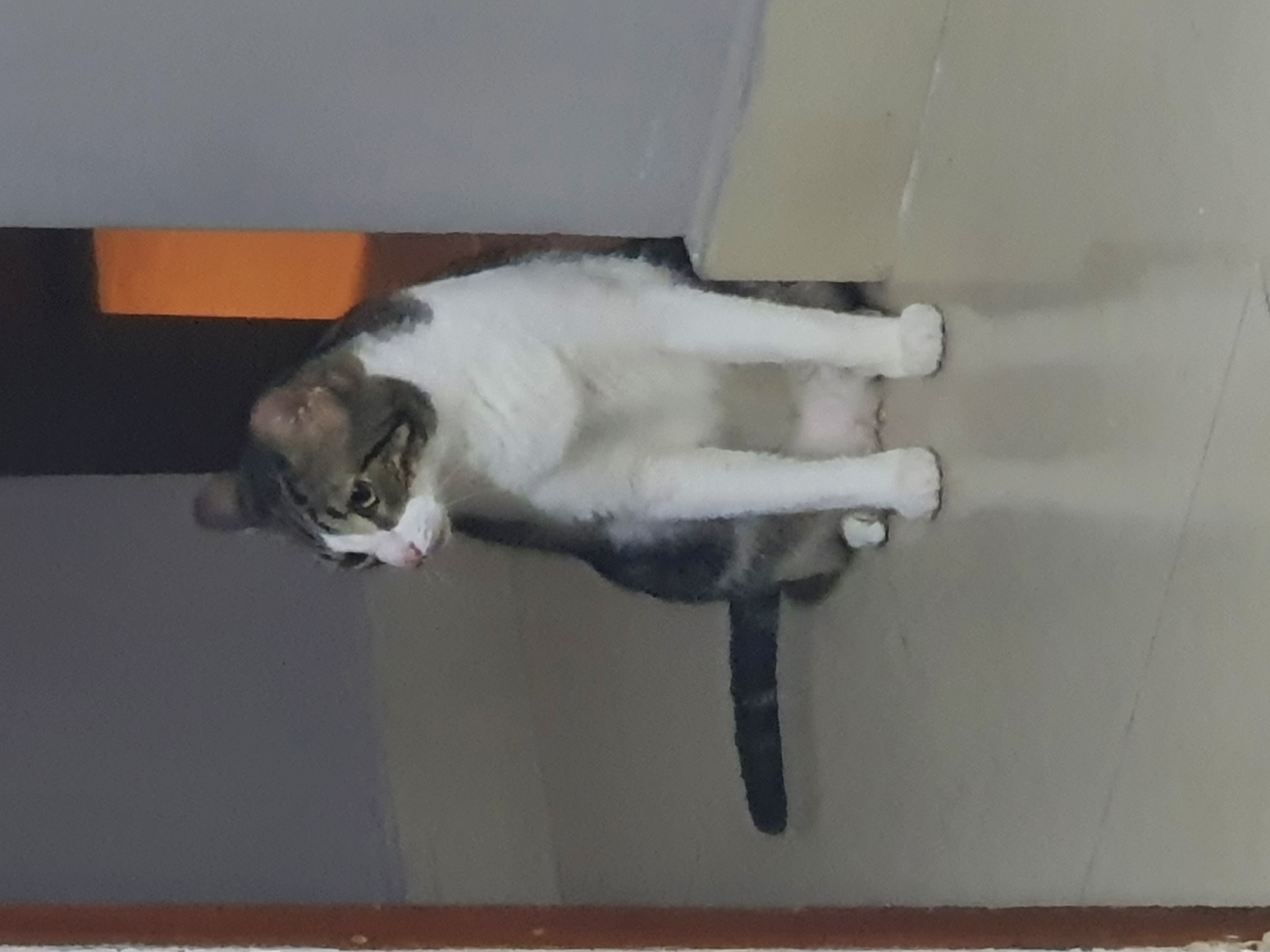 My cat Gus, full name Gustavo. (Big, fat, with white and brown fur)