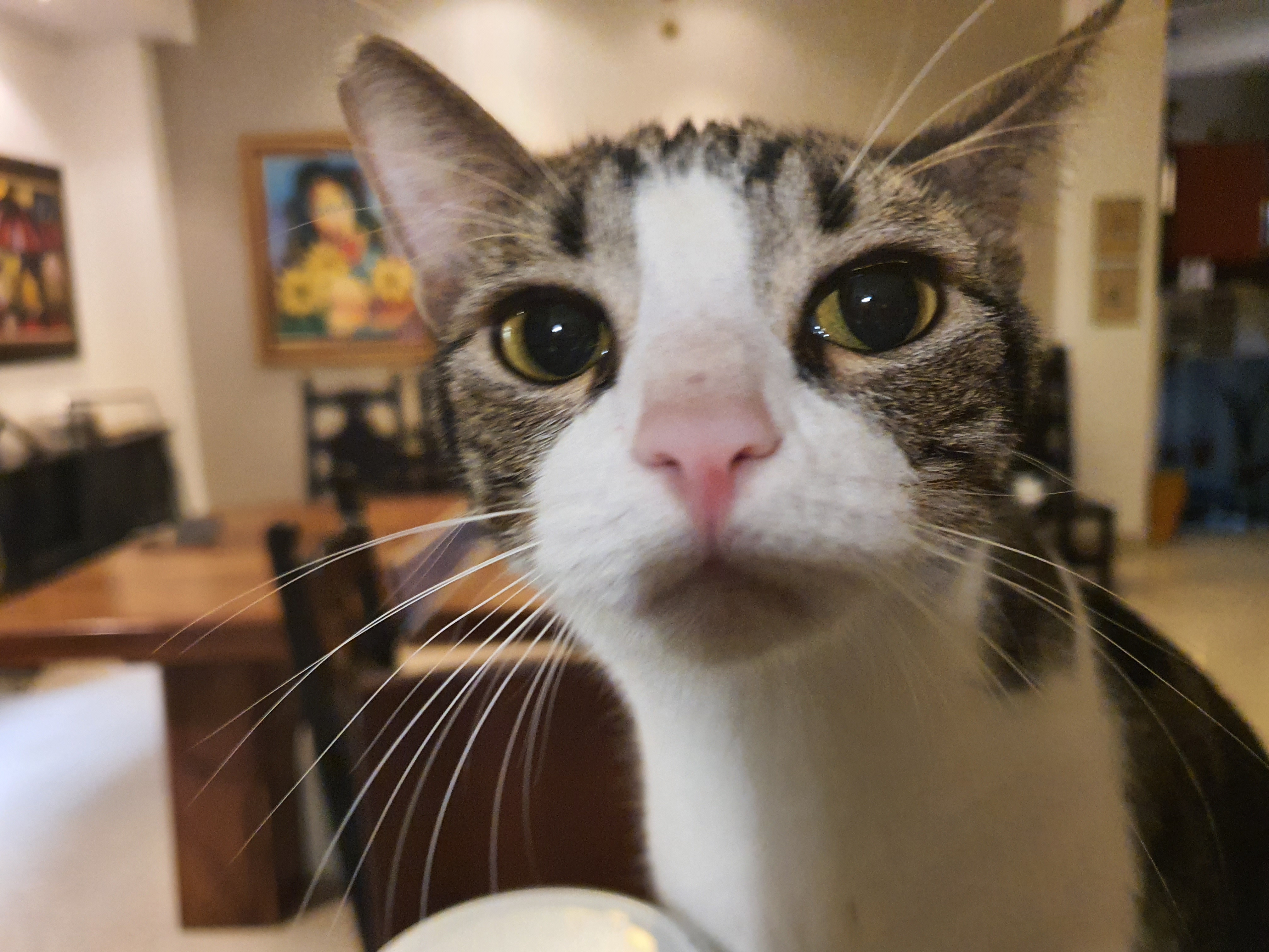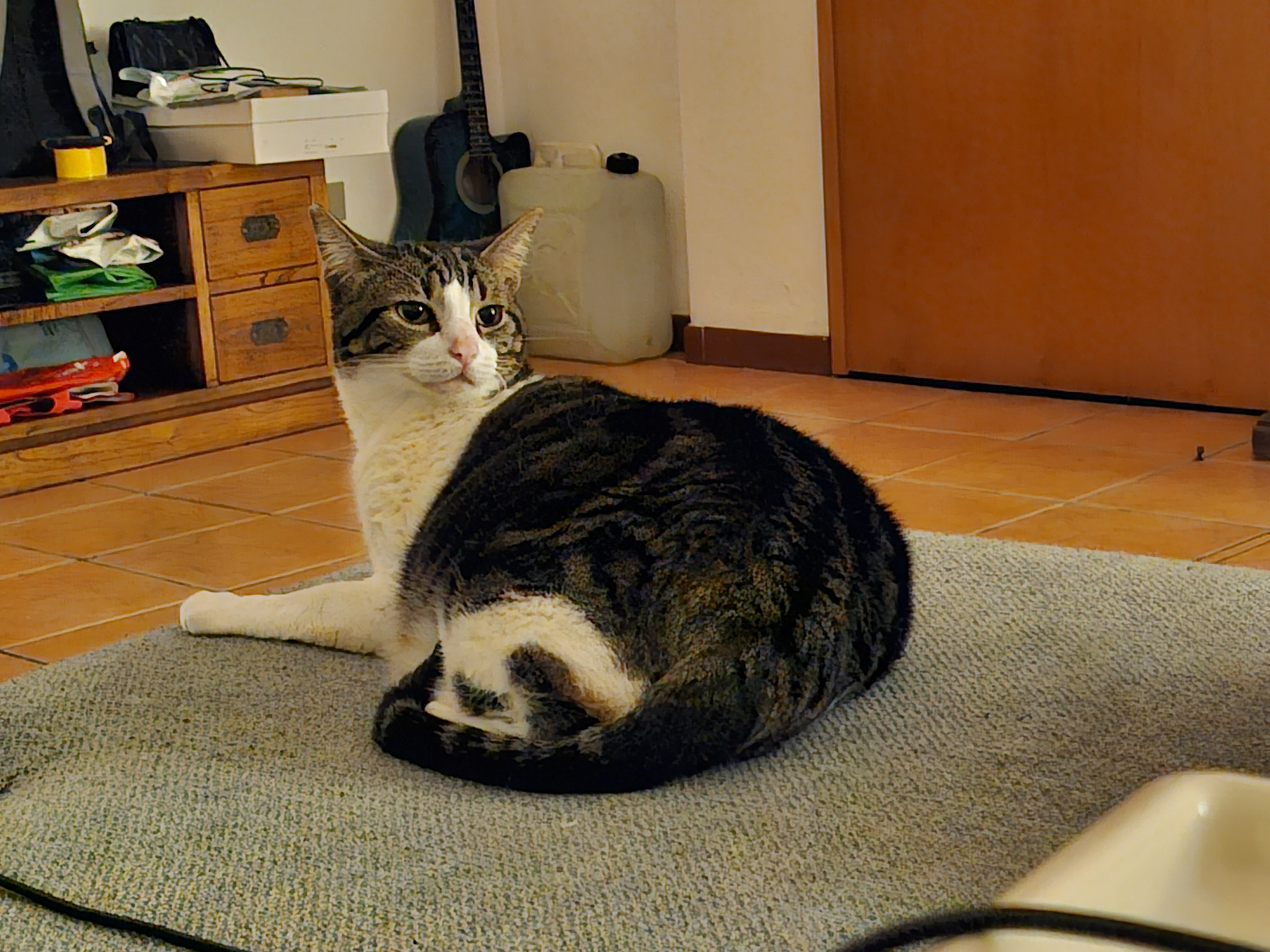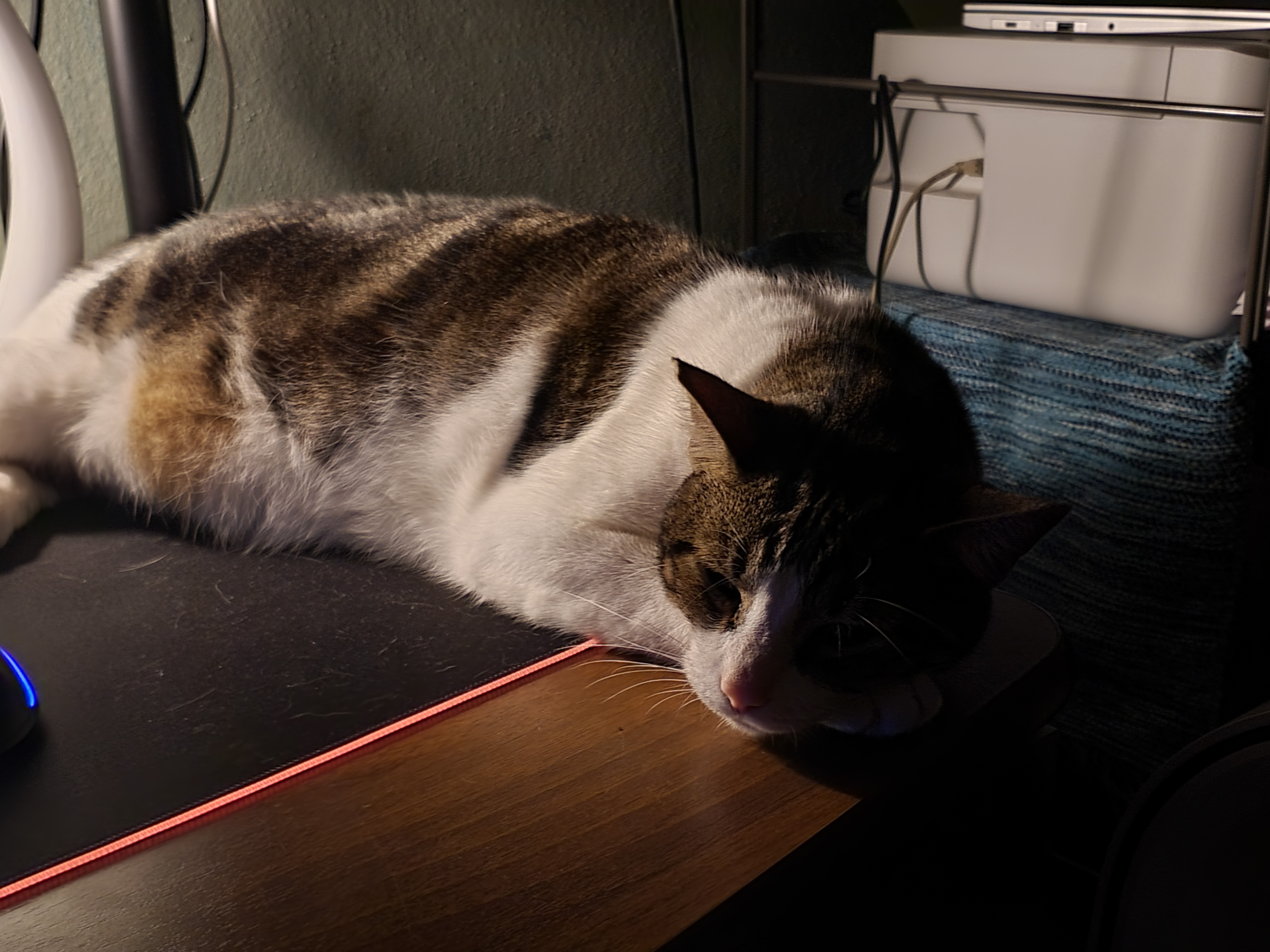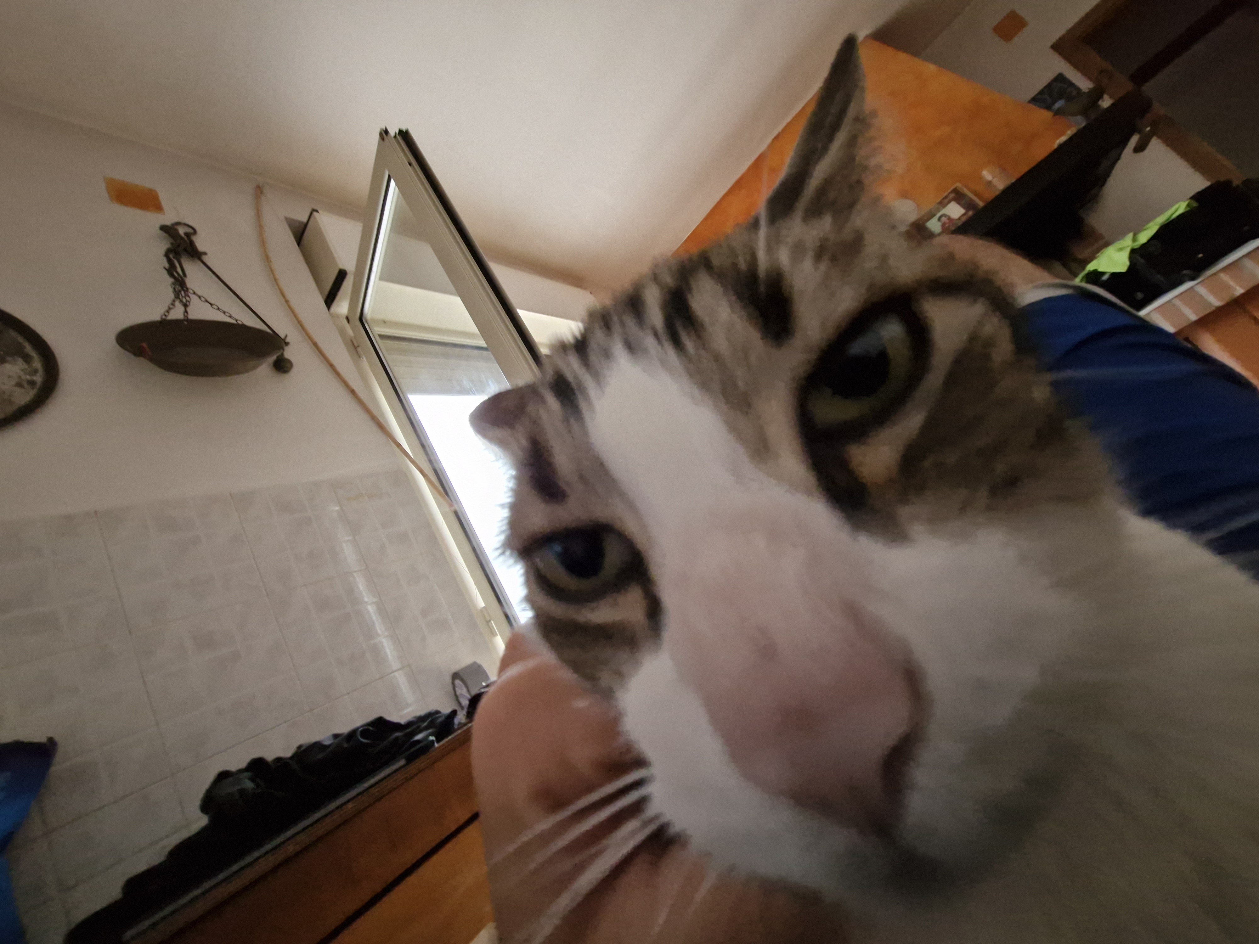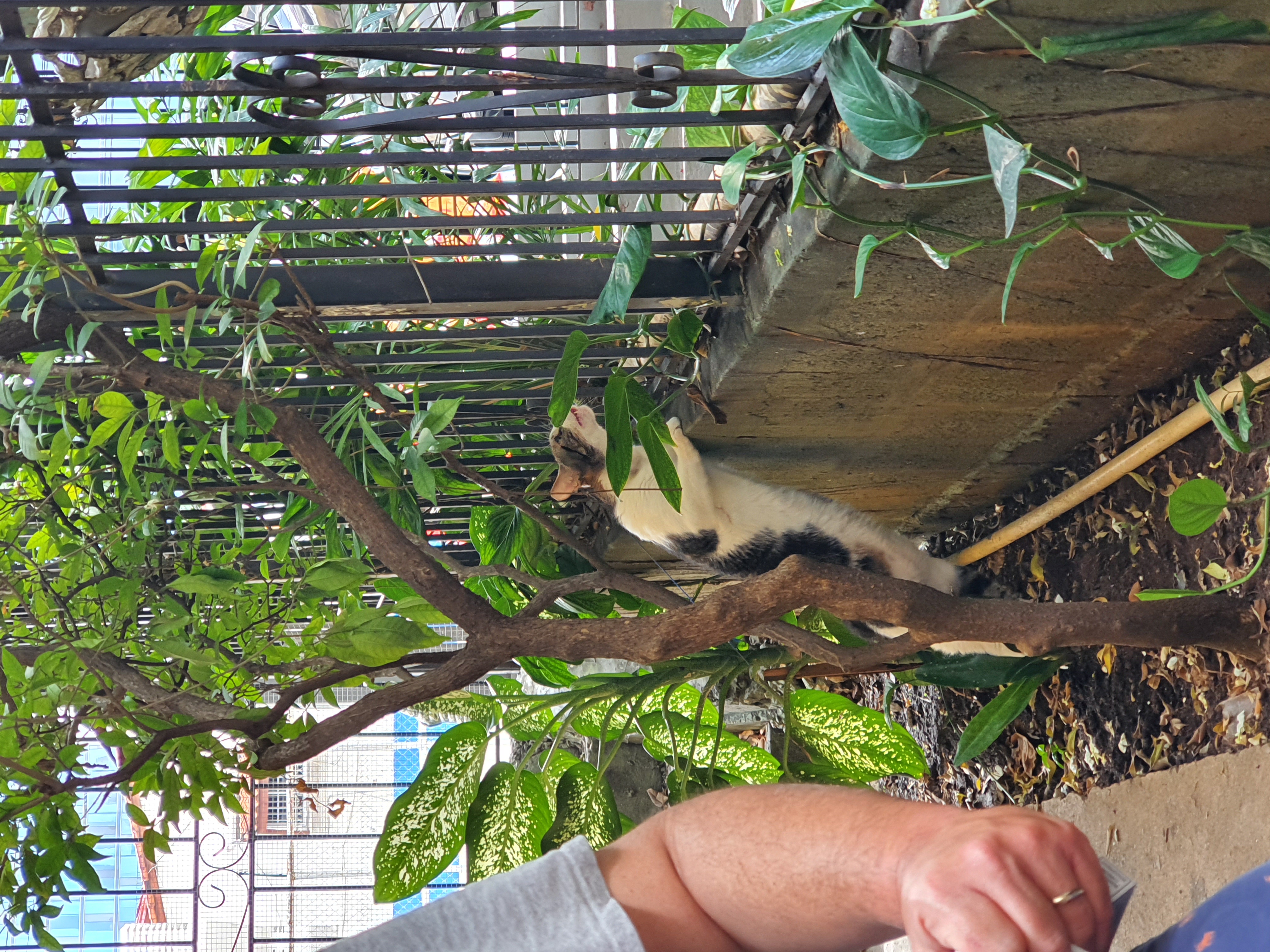 My cat Gus, full name Gustavo. (Big, fat, with white and brown fur)