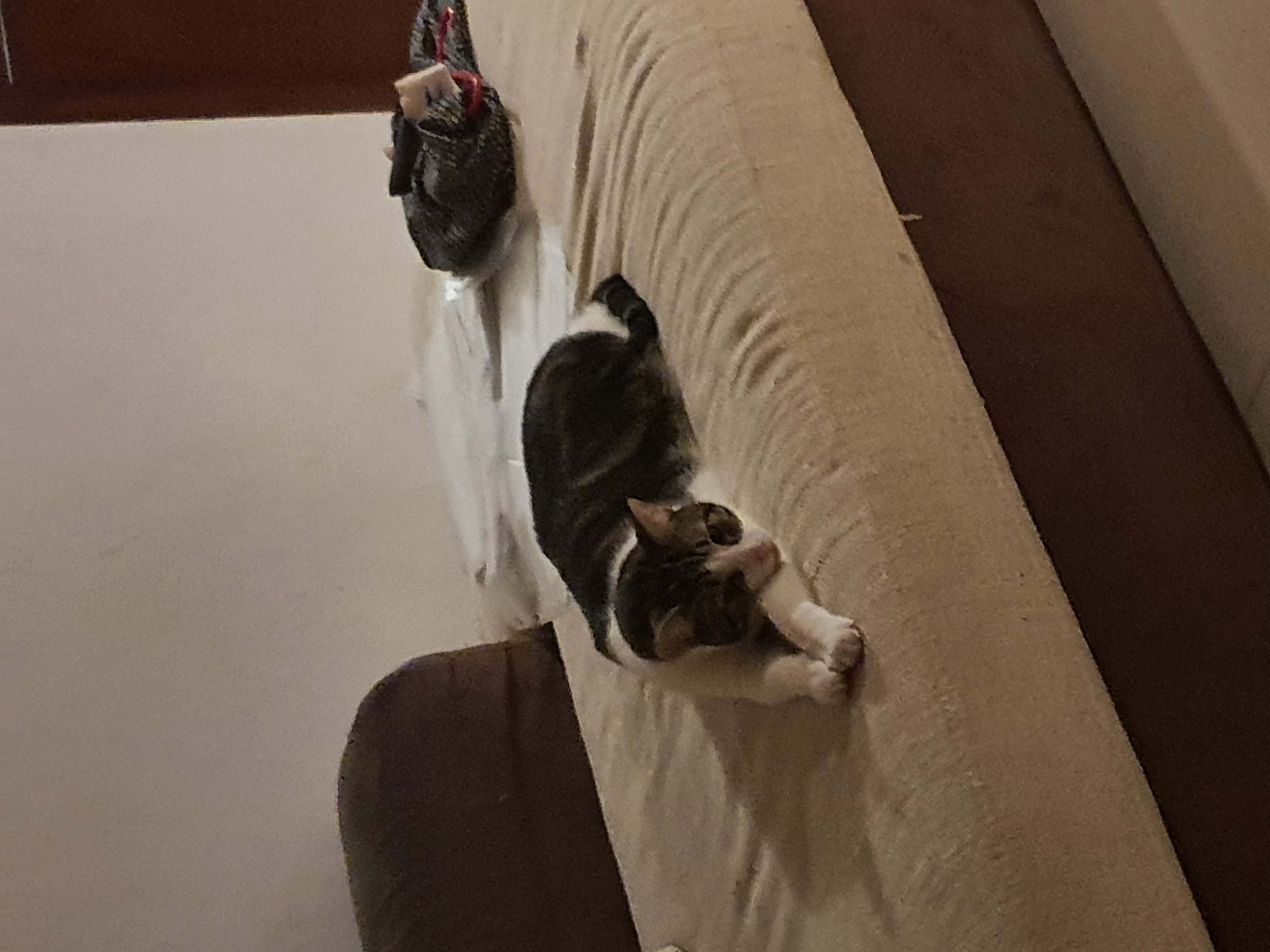His other pasttime is clawing at furniture instead of his scratching posts.