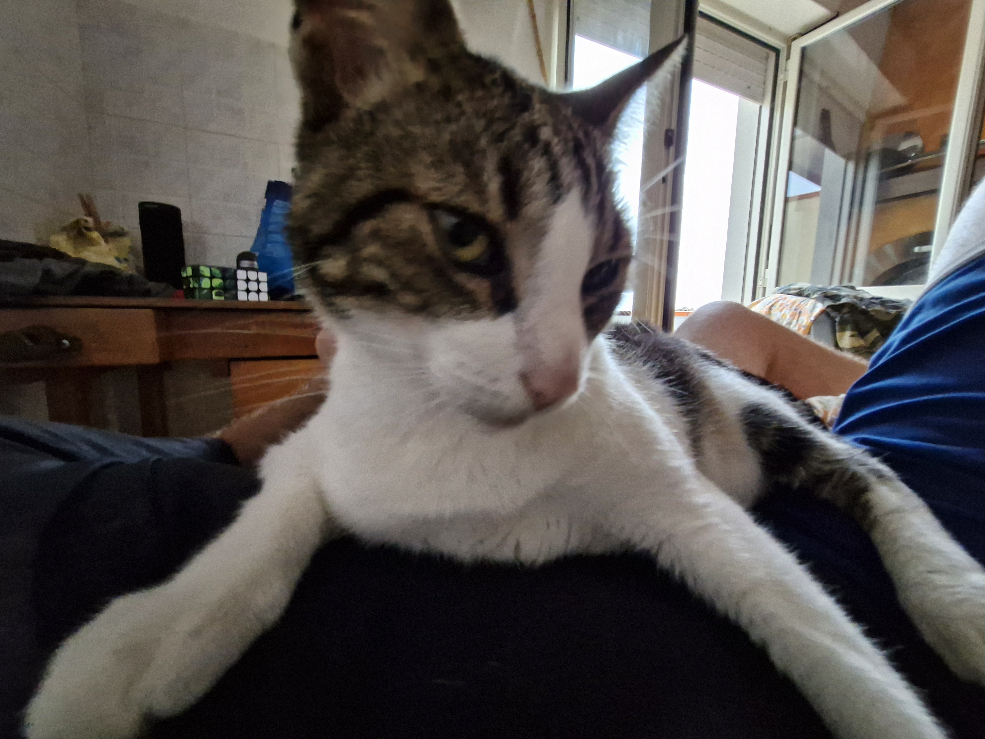 We adopted him in 2016 from a shelter when I lived back in Panama. He loves playing around but hates strangers. He's a little dumb and sometimes pees on my stuff if I'm away from home for a long time (as in months).