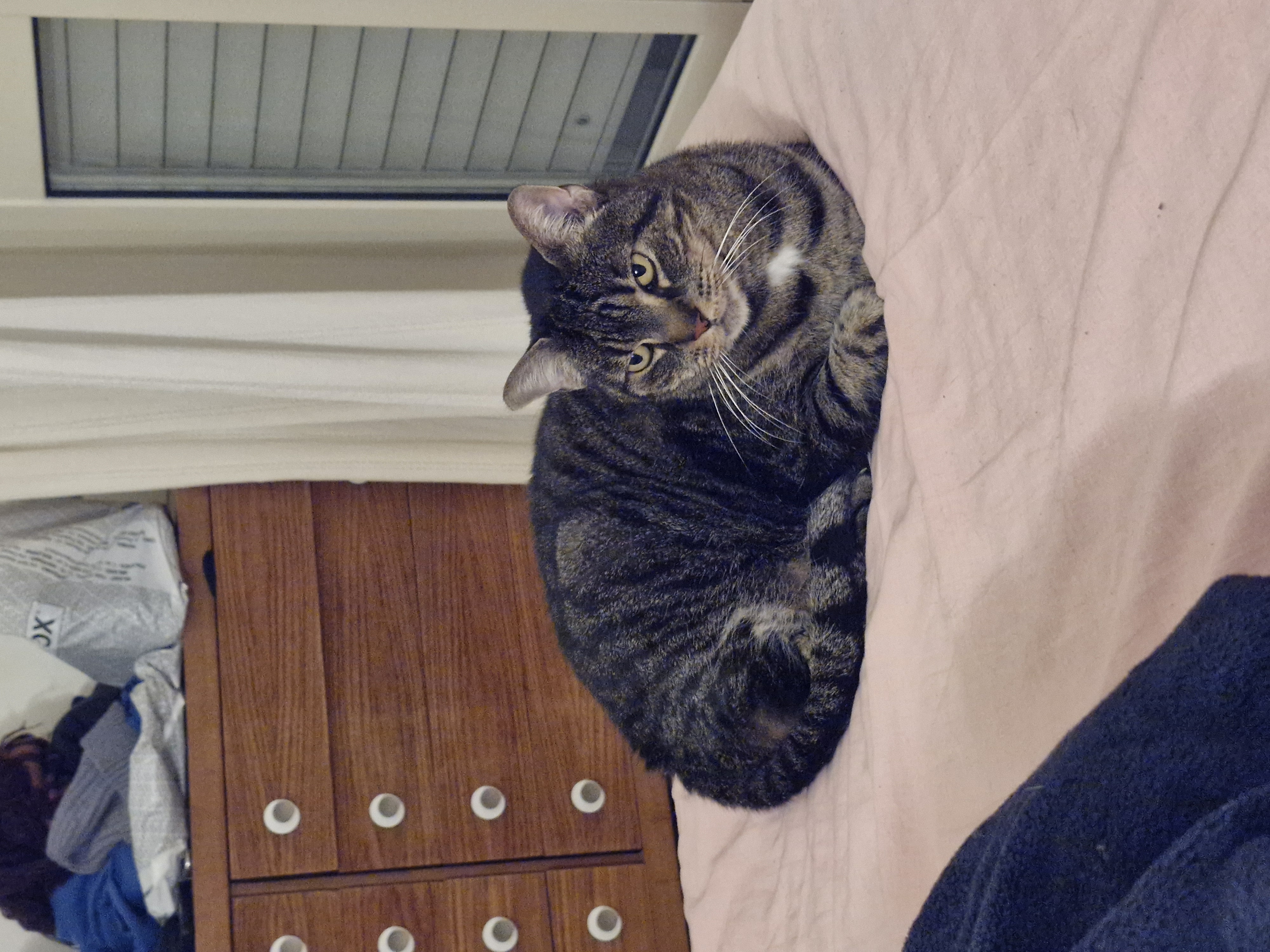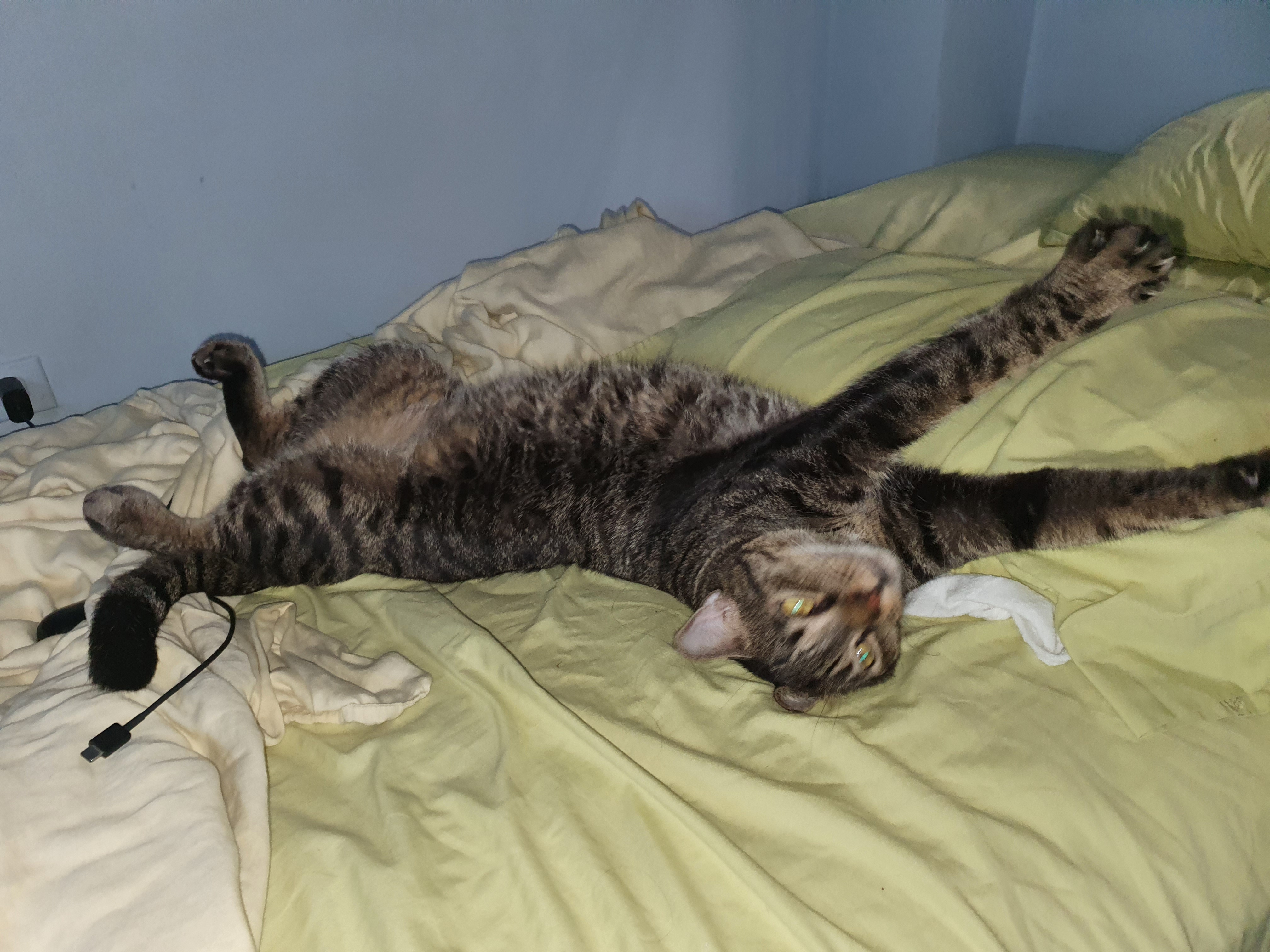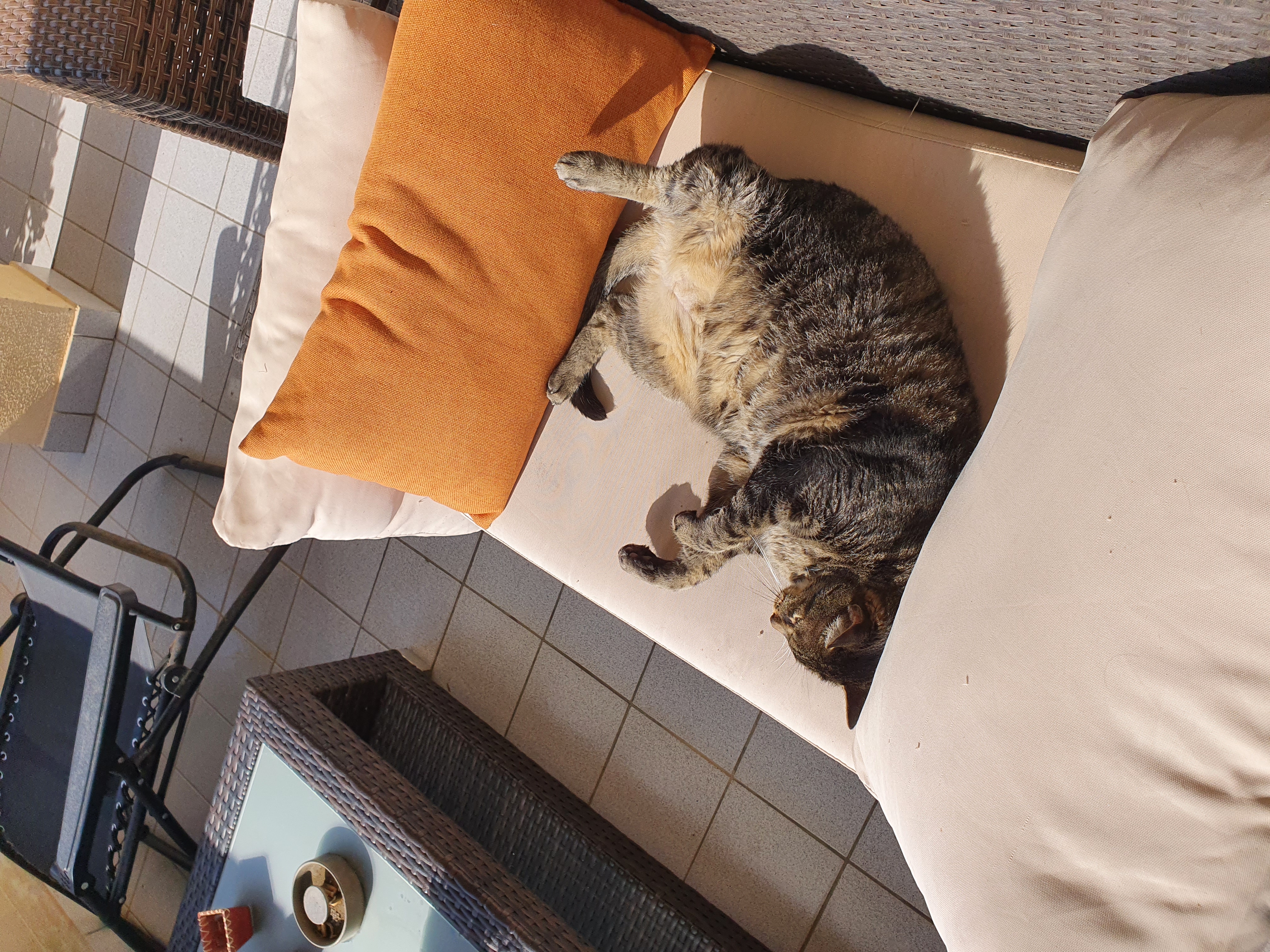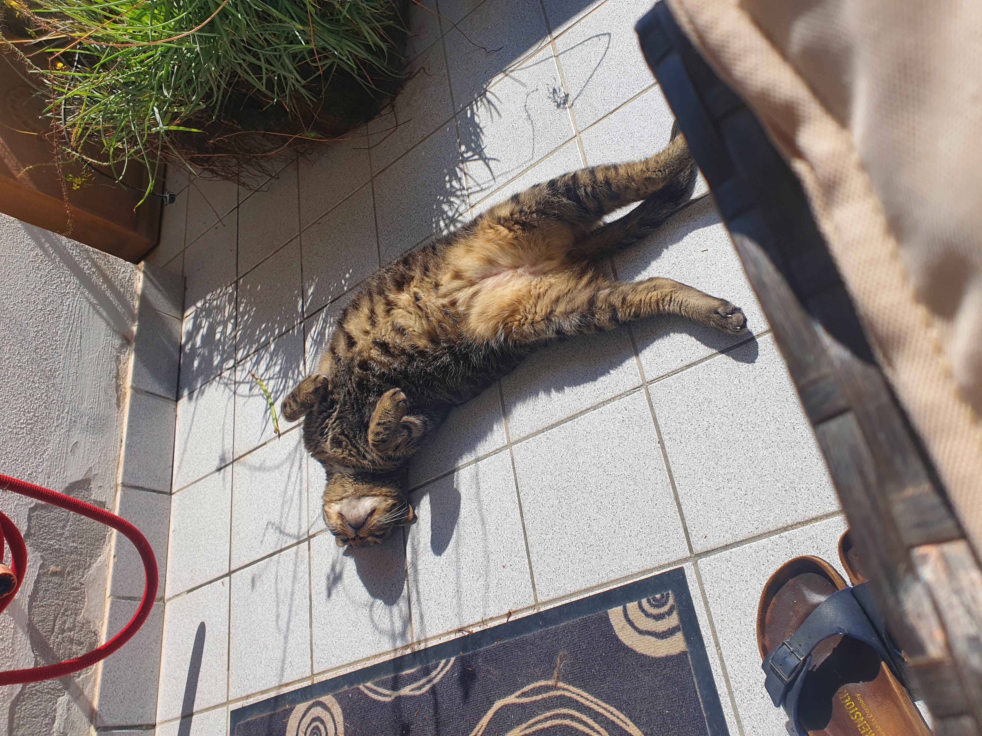 Anyway he loves sunbathing, running away from home, and exhibitionism. He's an expert loaf and loves to be lazy, doesn't mind strangers and will just chill around - no fucks given.